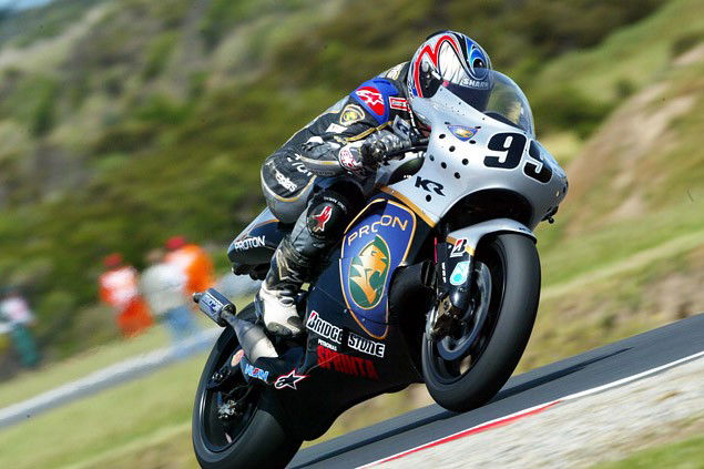 1:31.9 was the lap that clinched the final two-stroke pole with Jeremy McWilliams around Phillip Island; with the silver Proton KR3 heading an all two-stroke front row. Neither McWilliams nor Nobuatsu Aoki troubled the top five on the KR3, but over a single lap around Phillip Island both McWilliams and Aoki were able to take full advantage of the lightweight 500cc triple and exploit the high corner speed around the circuit.