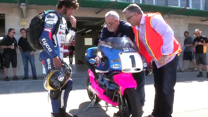 Video footage from Guy Martin's first ride on the Britten at Manfeild