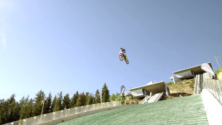 Robbie Maddison sets world record by riding off Olympic ski jump
