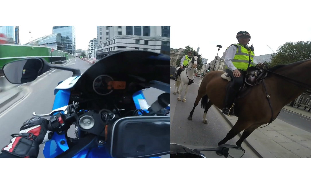 Wheelie biker gets stern telling off from mounted copper