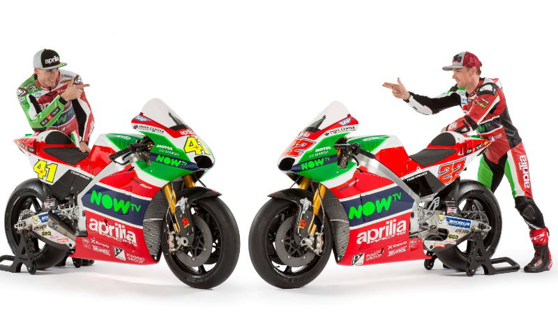 Aprilia's all-new MotoGP line-up of Aleix Espargaro and Sam Lowes to race in this striking 2017 livery.