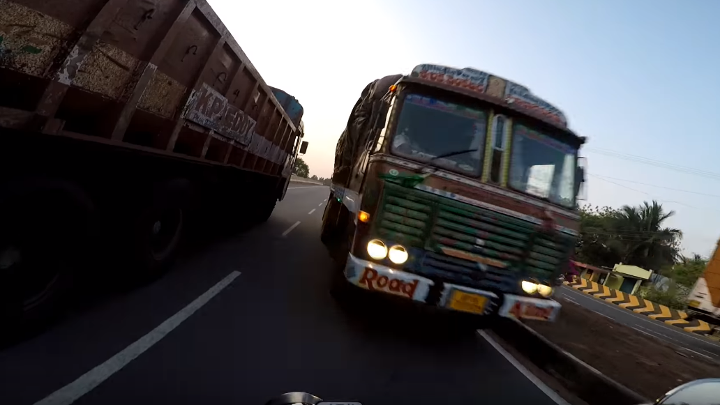 The Indian rider captured the incredibly close call on his helmet cam