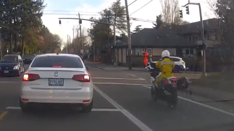 Biker comes inches from death in truck near miss