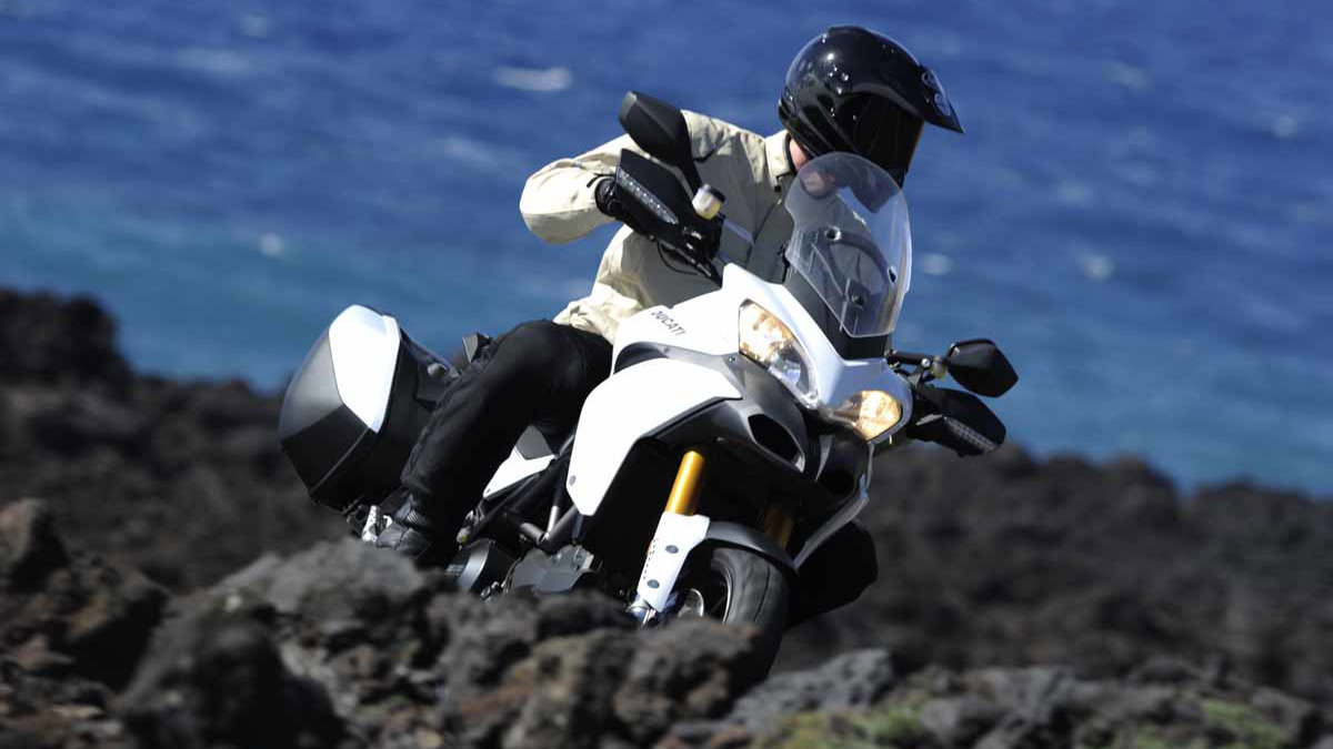 The new 2003 Multistrada. It's a practical, useful alternative to a sportsbike, but it can tour, commute and still cut it in the twisties as it was born on the mountain roads