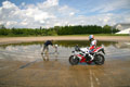 ![]() Niall says, steer clear of this! Riding in the wet isn't most people's idea of fun, but if you've booked a track day don't let rain stop play. If you can be smooth and confident in the wet you'll only be a better rider in the dry, so don't waste the opportunity to learn. The key is to relax, not panic, and get out there and have fun. Niall knows best: "As with all riding being fluid - pardon the pun - at all times is the key. Smooth application of the brakes is crucial, but you'll also find that backshifting earlier using the engine to slow you down is effective. Once you're off the brakes, get the weight balanced before you turn in as side grip is minimal in the wet. "Use a constant throttle mid-corner then, when you're accelerating out, very gradually open the throttle until you're upright and on the grippiest part of the tyre. If possible drive out in a higher gear as this will make the power softer. Feel for wheelspin as you go, and be ready to roll back the throttle if the tyre loses traction." Staying comfortable, seeing where you're going and keeping in control is important too - if you get cold and miserable your concentration will suffer. Niall again: "Wear thin rubber gloves under your leather ones - they'll give you better feel. Fog City or Pinlock visor inserts guarantee you clear vision and no fogging, but make sure your visor is adjusted properly as water can come down the inside at high speed. Taping along the top will eliminate this. Finally, wear Tesco carrier bags inside your boots -they are absolutely brill at keeping you tootsies dry!" | |