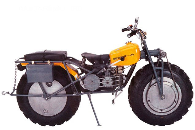 The Rokon is an impossibly ugly contraption still being made today. Powered by a 172cc lawnmower engine making 6bhp, so unlikely to win speed as well as beauty competitions. Has an accessories list to rival BMW’s, which includes everything from saddlebags to gun racks. Guaranteed to have you openly laughed at by all.