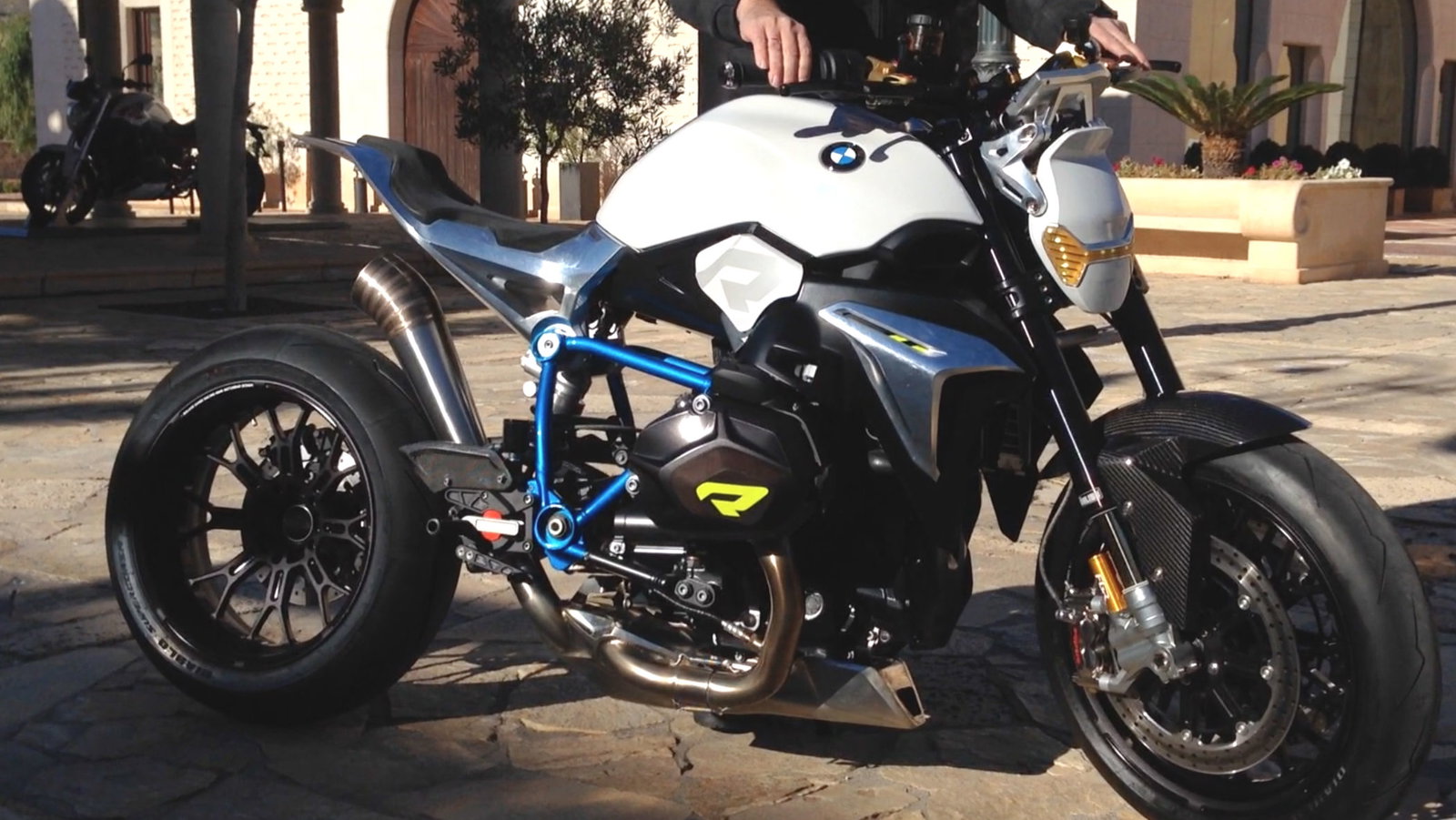BMW fired up the Concept Roadster and took it for a few laps around the hotel courtyard at the R1200R International press launch in Alicante yesterday.