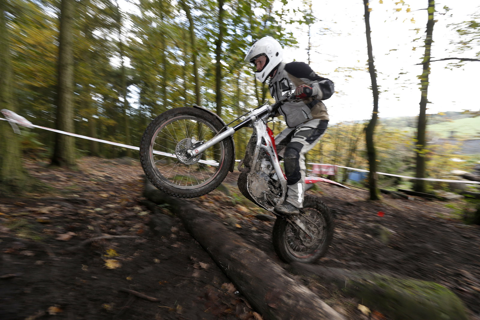 I had a few more goes at the slalom, with mixed results, failing more than succeeding. The instructor, seasoned trials competitor Dan Thorpe, had said anyone struggling with the slalom should not try the next section in the woods. But when the group peeled off, I didn’t want to be left behind. We arrived at a short circuit over rocks and roots, with the odd sharp turn dictated by trees. I picked a line through the rocks. At least I tried to look like I was picking it. I came unstuck at a sharp left, with the front wheel against a tree. There was no pretending I’d picked this.