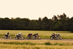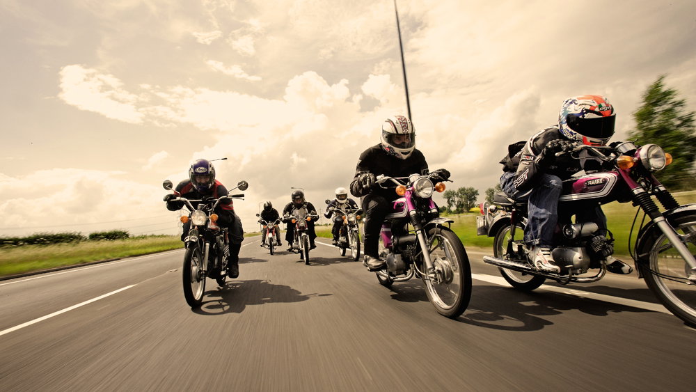 A couple of years ago we did a 400 mile, 3 day tour of the North on ‘70s mopeds. Despite the fact that up some of the hills we were moving slower than the cattle grazing in the fields at the side of the road, and despite the fact that even on the flat, with your chin on the tank, your left hand on the fork leg and a tail-wind, 50 mph is all you can hope for, we were all surprised how much ground you can cover on ’em if you keep going. Another shock was how much we all enjoyed trying to coax the best out of these thirty year-old little two-strokes.
