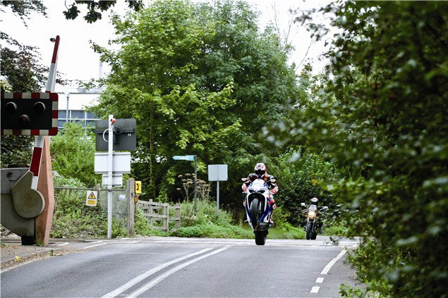 Kicking off at the Monkeys Forehead pub, wave your goodbyes to the hoards of great unwashed and blast up to 40mph before hitting the brakes hard for the first mini roundabout. Power past the Ferrari dealership displaying your sportscar-beating raw acceleration up to 50mph then tuck behind the bike's screen for the mile straight. Popping out from behind the bubble, slam on the anchors and hook a hard right at the roundabout to scream through Egham, listening to your exhaust note reverberate off the shop's windows at 29mph. Snick it down one for the S-bend then it's out into suburbia.
