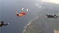 In the video Travis exits the plane on his own, wearing nothing but a pair of shorts and trainers. He's then caught by a fellow skydiver, who swiftly secures himself to Travis with a tandem skydive harness. Thankfully the pair get to earth safely for some gold old West Coast celebrations.