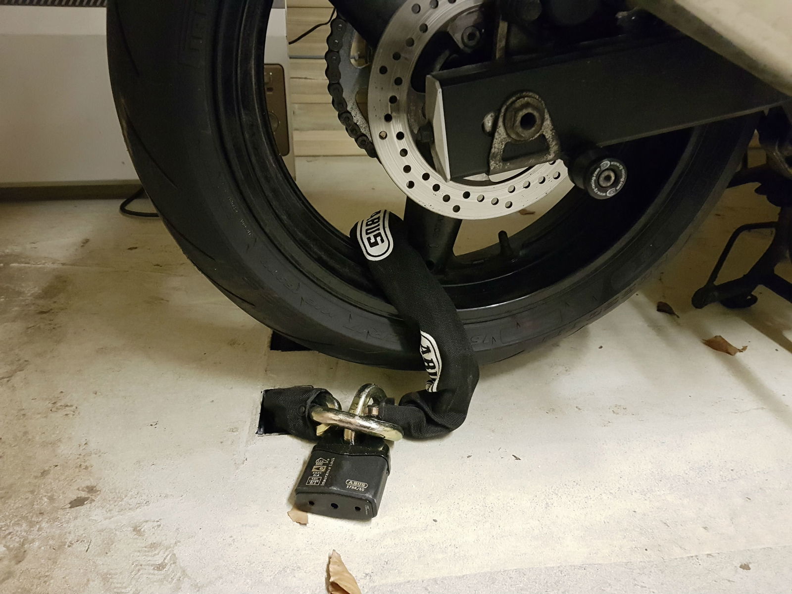 A decent breathable bike cover will help keep dust and grime away, and of course you'll need appropriate security in place. Bolt-down wall or ground anchors are relatively easy to fit. Sinking one into a concrete floor, as shown, is more complicated and expensive but offers the greatest chance of finding your bike where you left it.