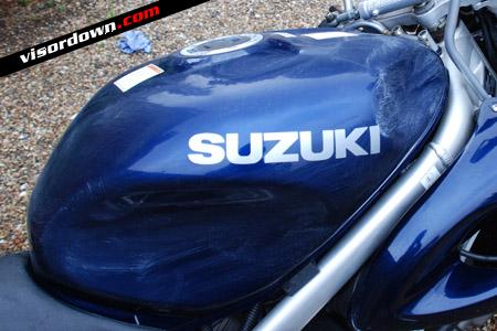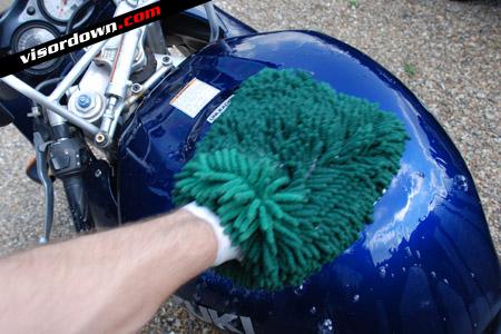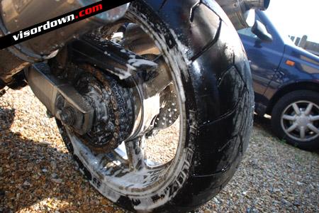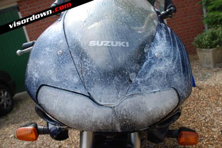 If, like on my TL1000s, the front end is covered in layer upon layer of flies and the back end has specks of tar and chain lube across it, you'll have a tough job to remove this with shampoo alone.
