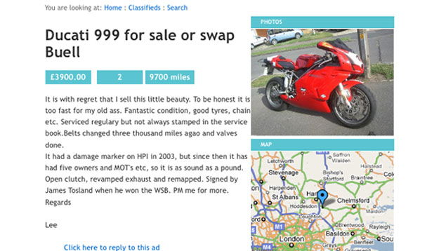 Looks, condition and price are the three key features to focus on when sculpting the perfect classified ad. Stuart Milne, deputy editor of Autotrader is the man in the know: ‘Don’t waste time and money paying to say how good a rider you are. The details – mileage, service history and modifications – and attractive, and competitive price is the key.” People want to know that your bike is the best possible example they‘ll find. Write a list of all the good things about your bike, categorise them in order of importance and stick to the facts – this isn’t a personal ad.