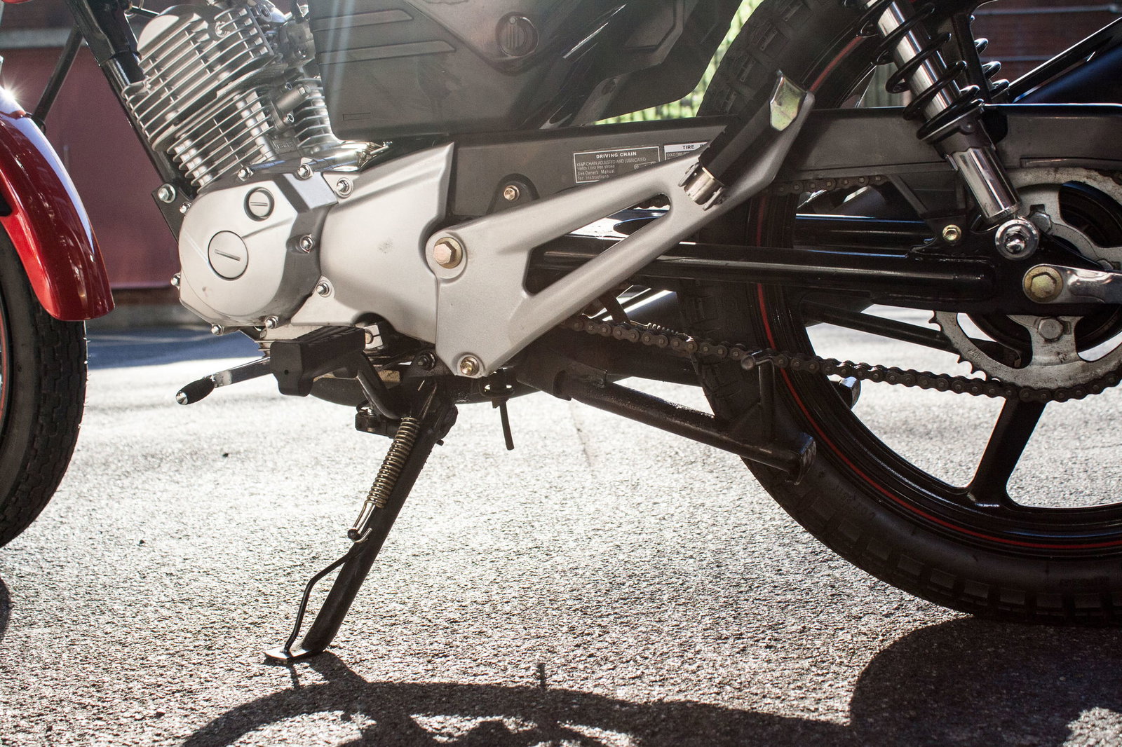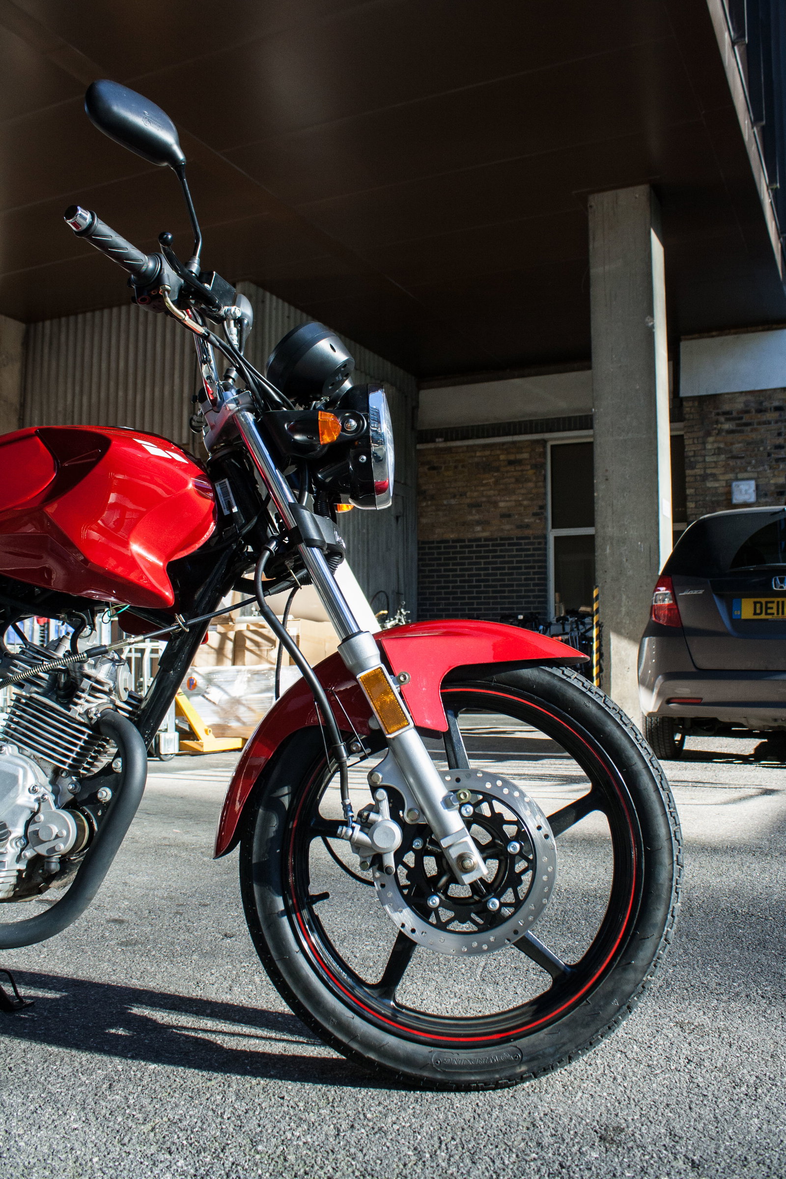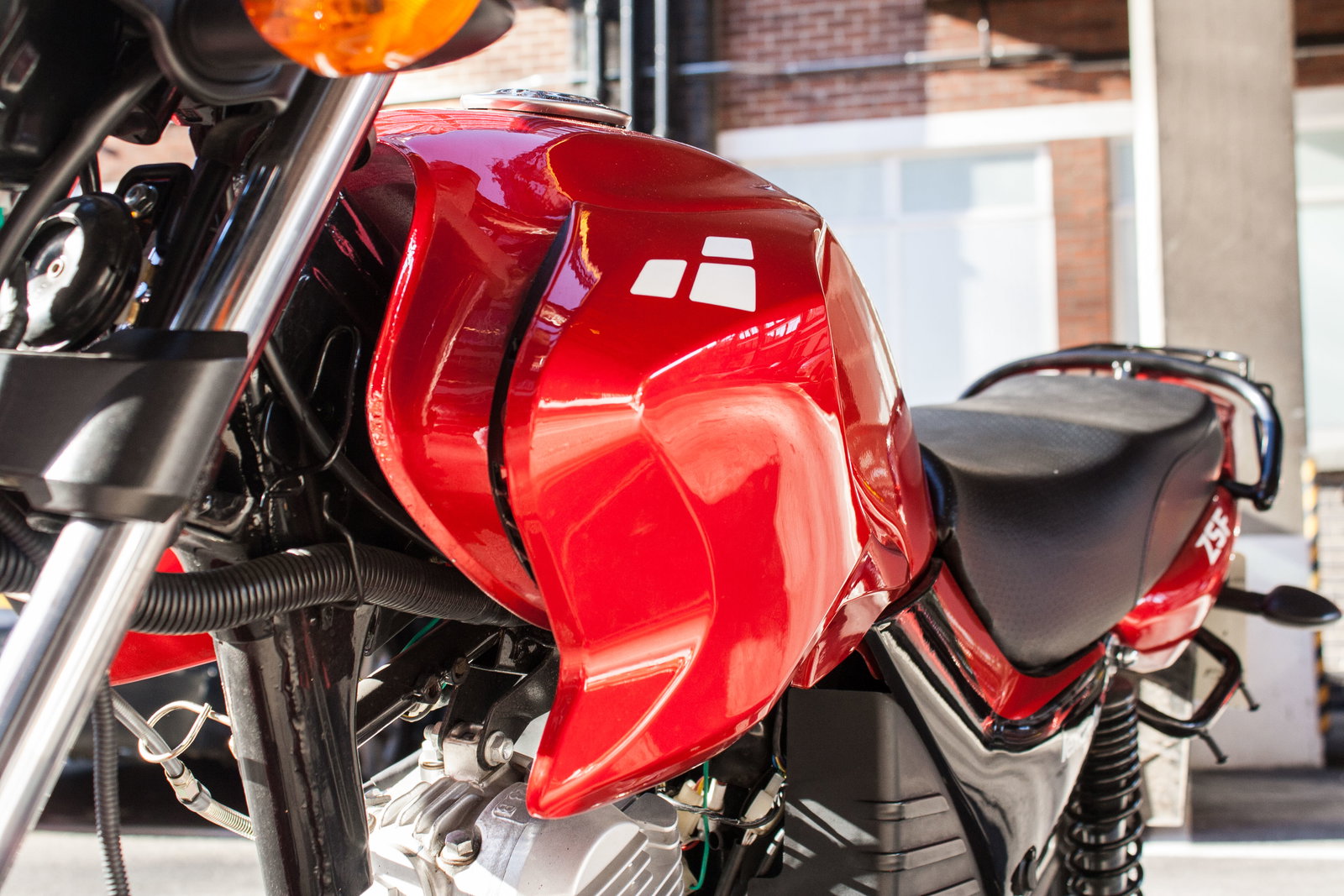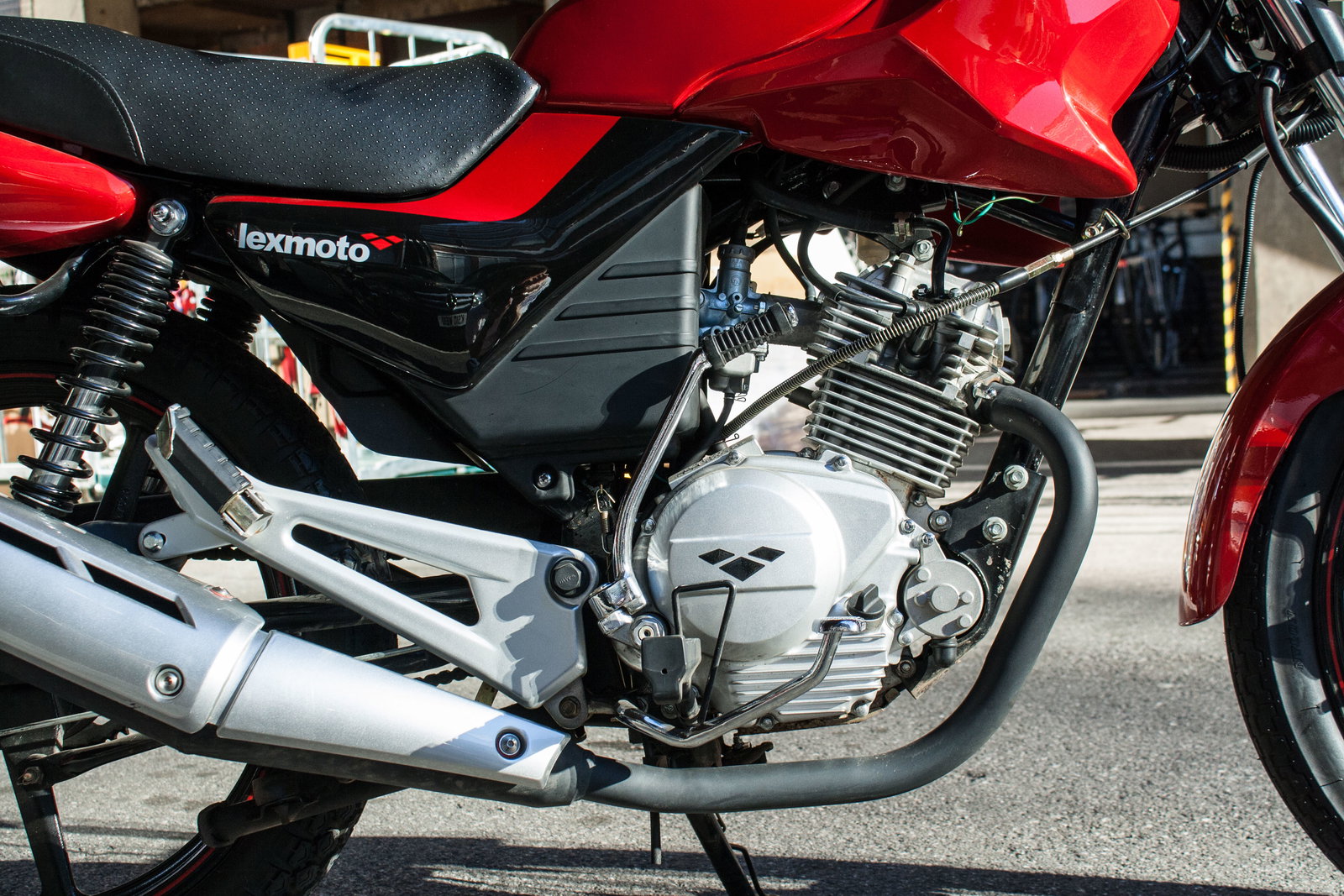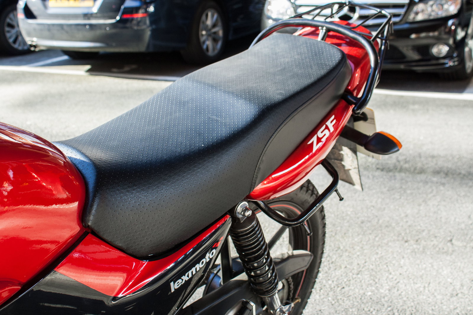 If you think you recognise it the ZSF, it’s because it’s 'inspired by' Yamaha's YBR125 according to Lexmoto, albeit with some new pods on the sides of the tank. They look like they might be directing air towards the engine but they don’t do anything apart from make the ZSF look less meek. So when you leave it parked up, the bigger bikes don’t give it a hard time for being cheap and small. The paint is good too – the tank, seat unit and plastics are finished in a lustrous black and red that belies how inexpensive the ZSF is.