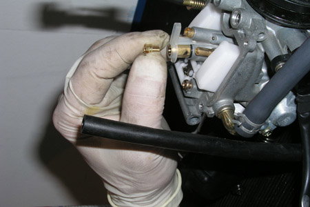 10 Unscrew the main jet and check it doesn't have any dirt stuck in it. Blow through the jet then give it a squirt of carb cleaner to be sure it's clean