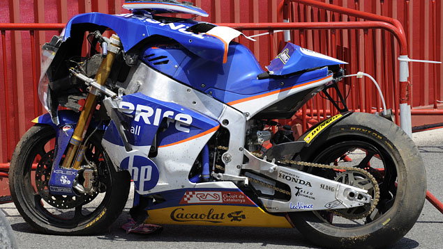 Repsol Honda rider suffers a broken right collarbone in the Le Mans crash