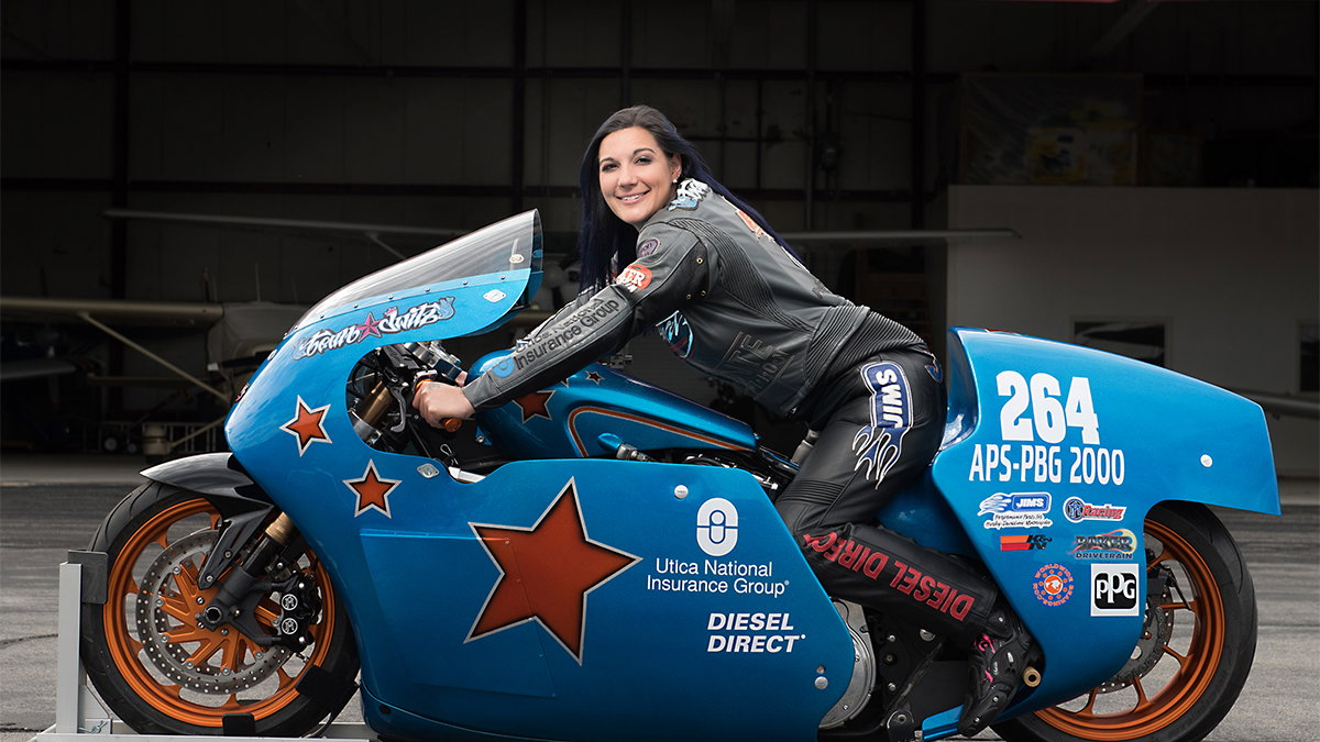 Perewitz has been around motorcycles her whole life, her father is the larger than life, multi-award winning custom builder Dave Perewitz who has fashioned bikes for Hulk Hogan, Kyle Petty and Aerosmith before establishing himself a nationwide reputation and making regular appearances on TV shows like Biker Build Off.
