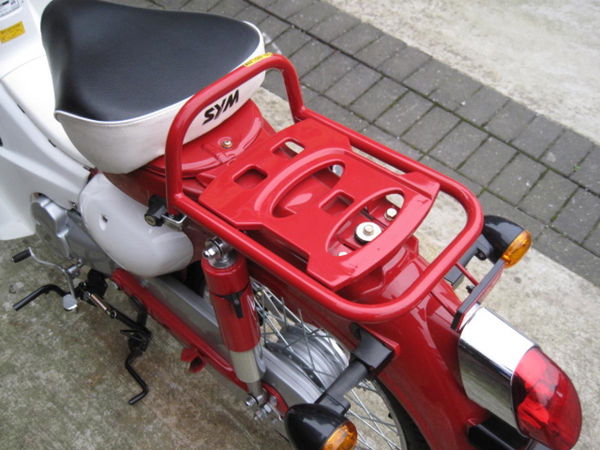 Sym has a good reputation. Our Marketplace Symba is the solo model with functional parcel shelf and coccyx-busting separator tube, but you can easily swap that for a full dual-seat (or, when in Taiwan, octu-seat). You’ve even got rear footpeg brackets, though not the actual footpegs. It’s all available.