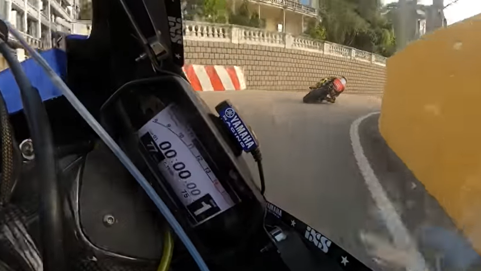 On this occasion we get to see Saiger – riding a Yamaha R1 – go tailing the Paul Bird Motorsport Ducati of McGuinness around the Guia Circuit street venue in an attempt to learn his reference points.