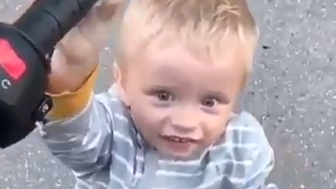 Awesome video shows a child revving a motorcycle for the first time and his face is a picture