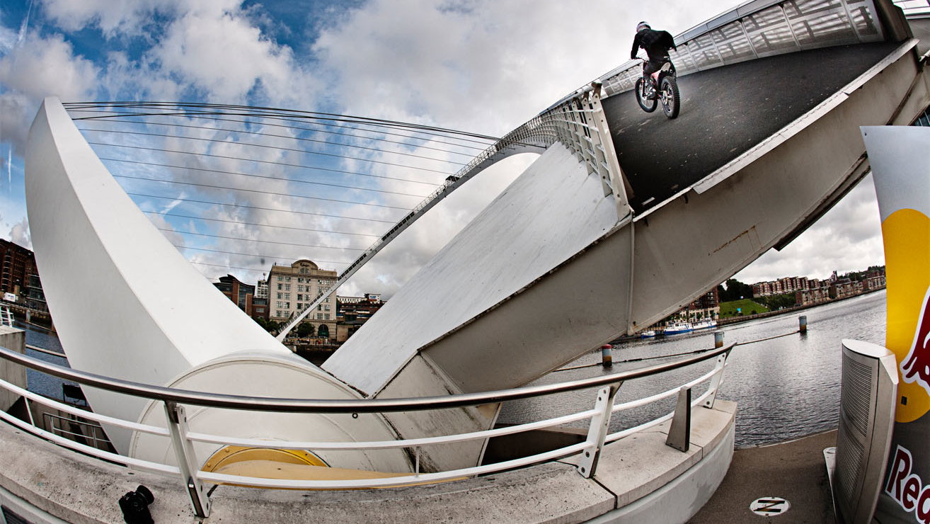 French trials ace wall rides across elevated bridge in Gateshead