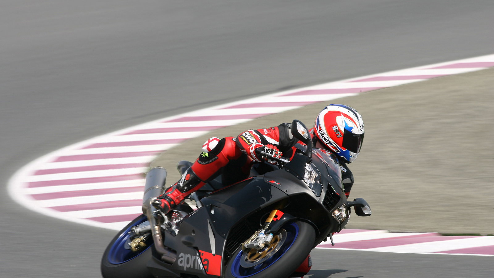 Sitting on the standard RSV-R ready for my first session around the Losail circuit in Qatar I feel like the bike's identical to the old model. The cockpit is unchanged and, apart from the blue fork tops and the slightly larger bubble in the screen, you would be hard pushed to tell the two apart.