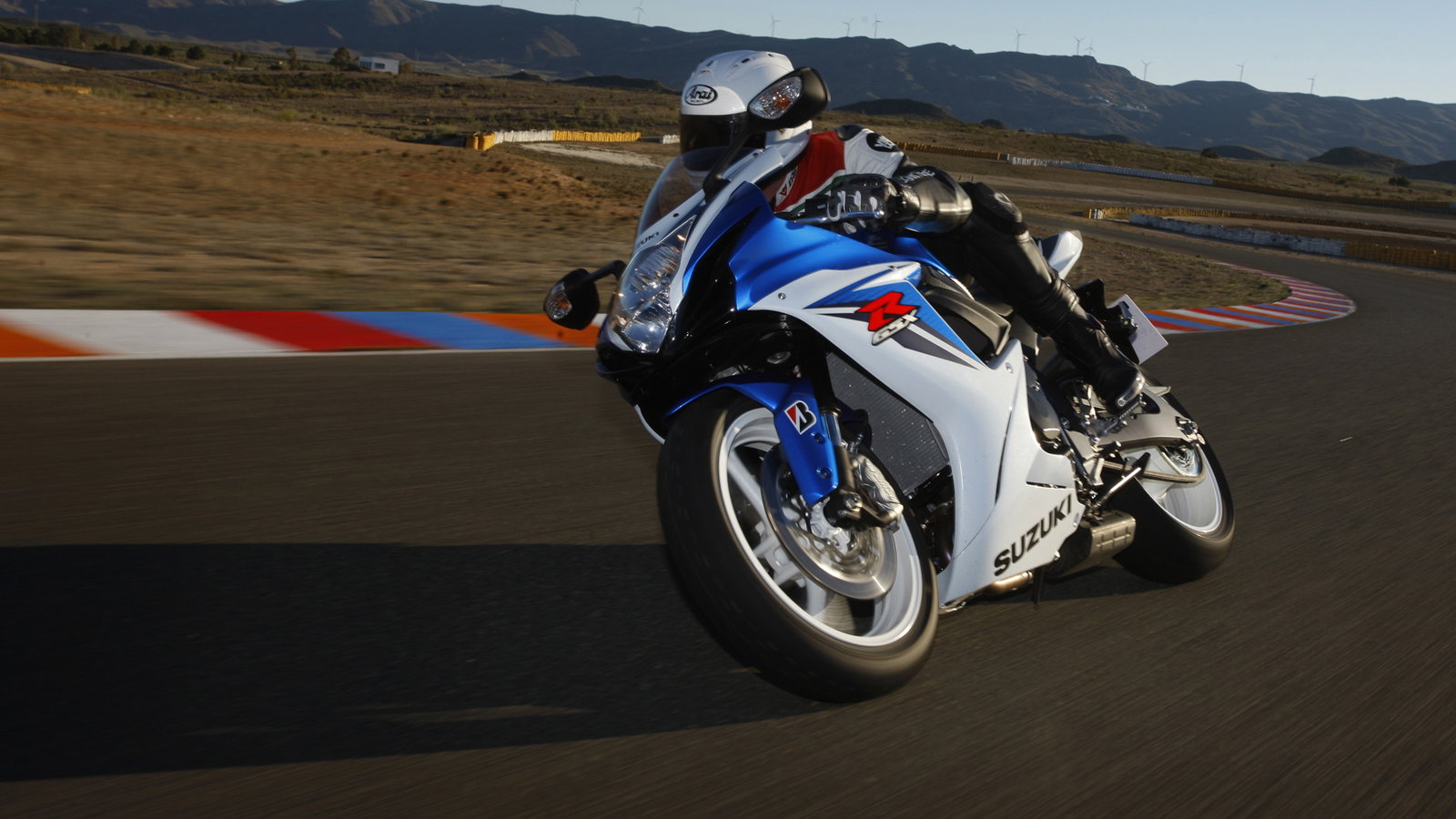 It’s super planted mid-turn too. There are plenty of places to test this round Almeria. Corners that go on an on and on where you crane your neck – Edwards style – to glimpse the exit. The GSX-R even with your foot and knee on the deck is super planted and you can feel everything the edges of the impressive Bridgestone tyres are doing.