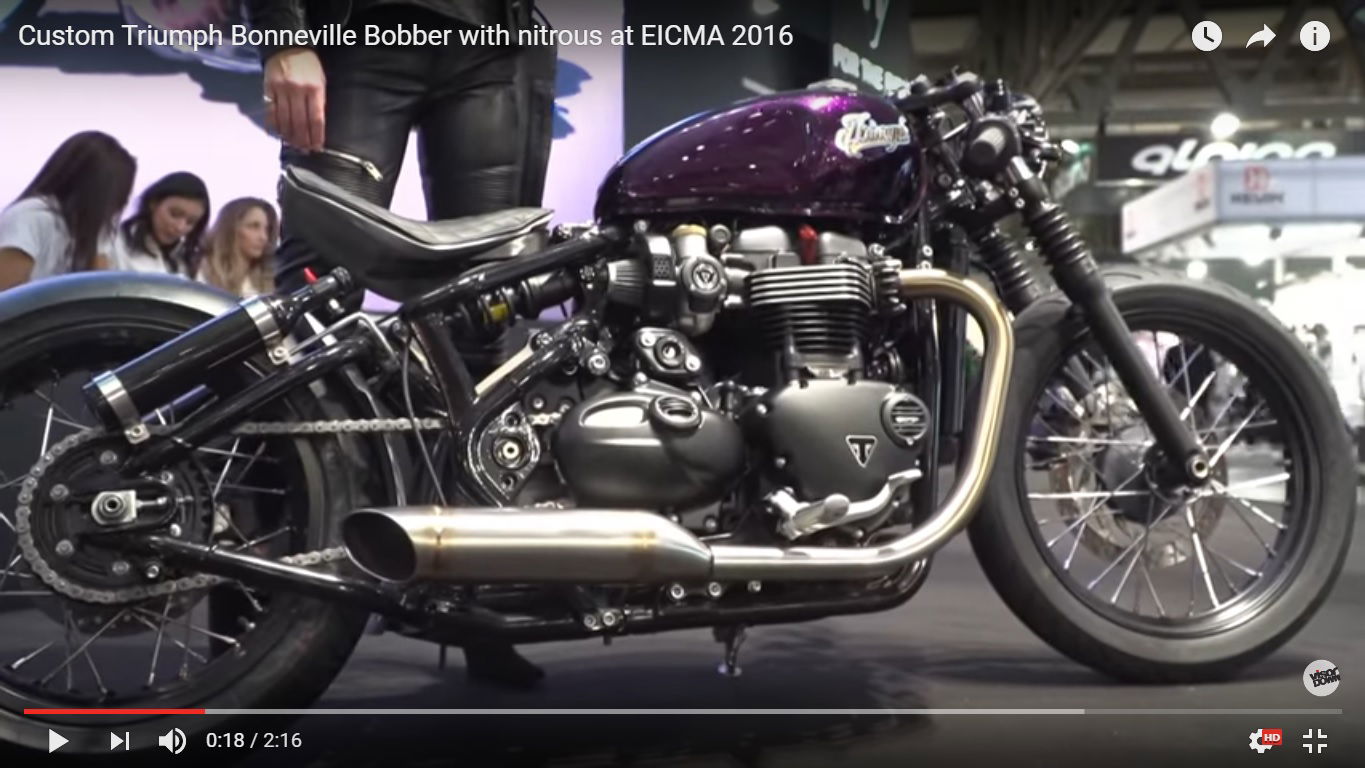 A close-up look at the first custom Triumph Bonneville Bobber - with twin nitrous