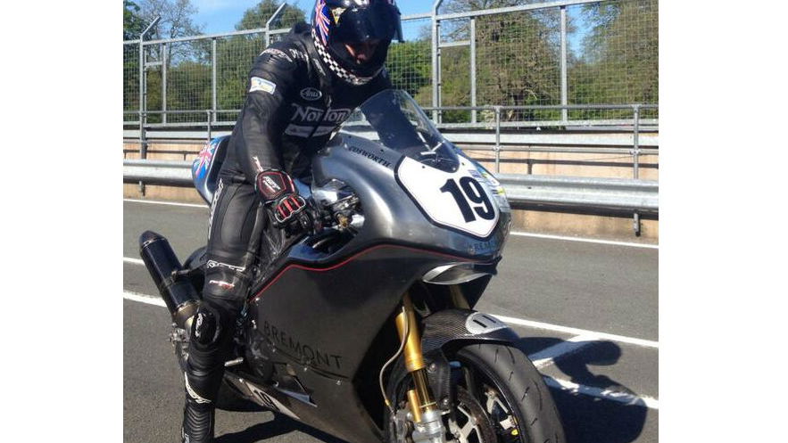 V4-powered race bike seen during testing ahead of TT debut
