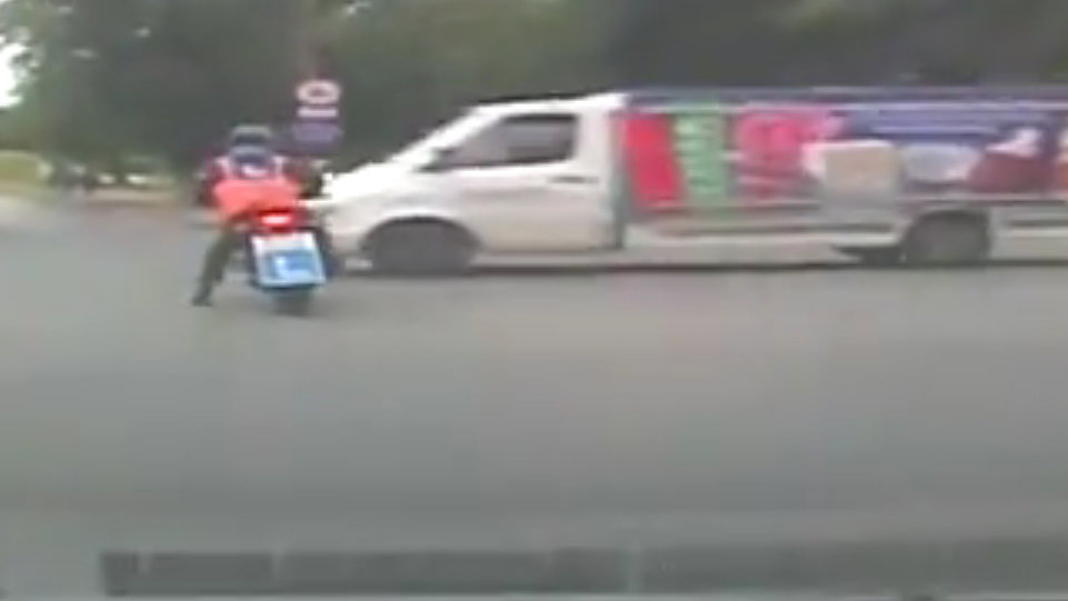 Unlucky motorcycle stall for this learner rider