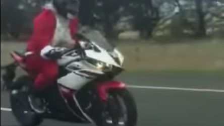 Santa Claus spotted riding a motorcycle...