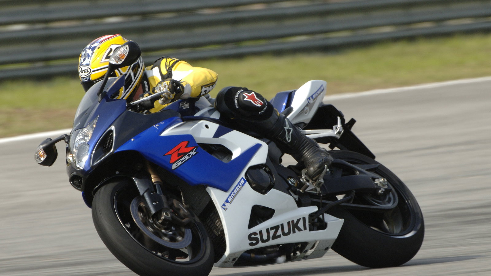 Double-bubble screen, seat cowl and stickers, but no Yoshimura exhaust