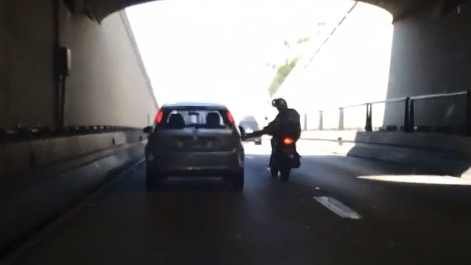 Furious driver attacks motorcyclist for filtering