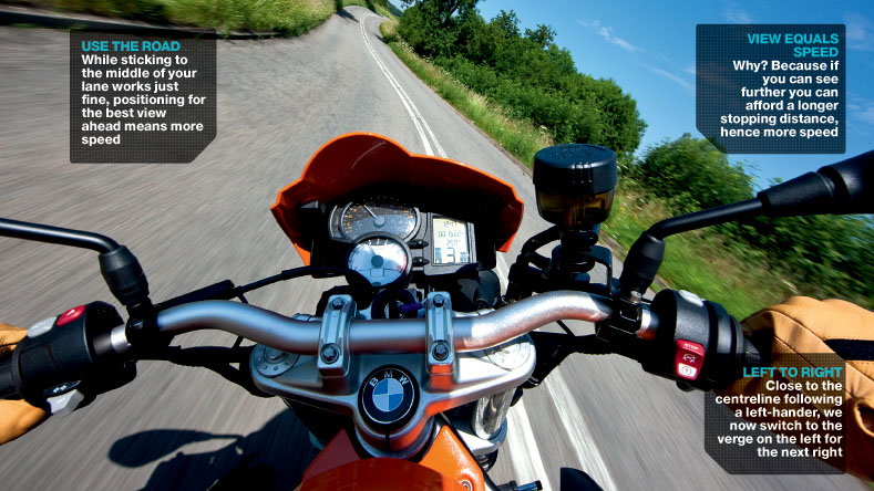 With any corner the objective is to get through as safely as possible, and that means maximising your view ahead. Here’s how to make the road work for you